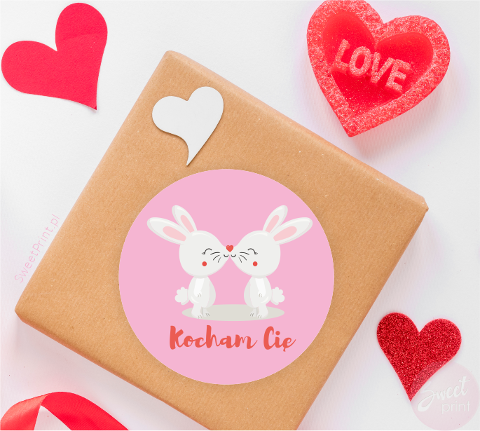 Naklejki walentynkowe z zakochanymi króliczkami