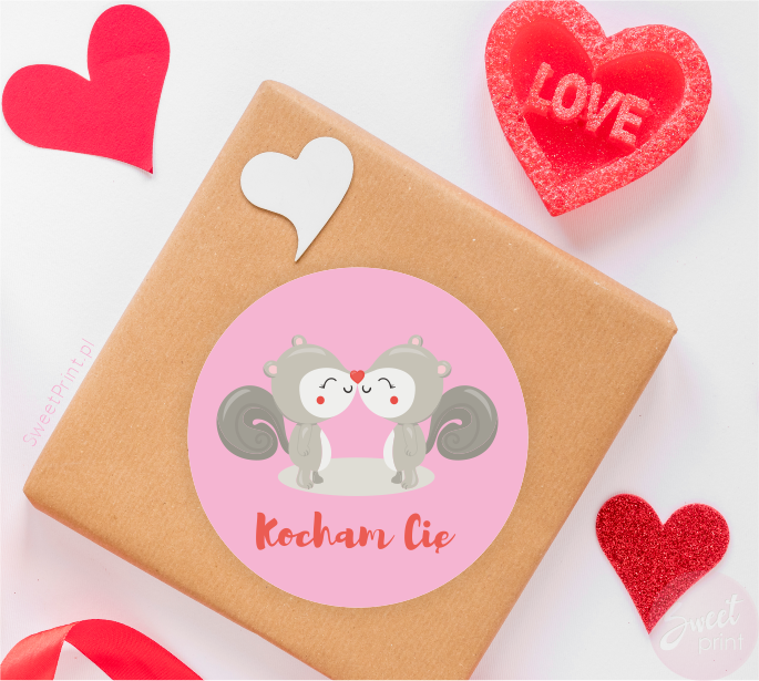 Naklejki walentynkowe z zakochanymi wiewiórkami