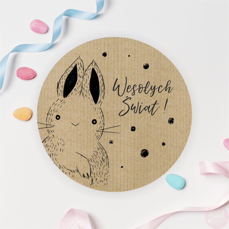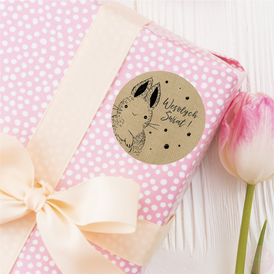 Wyjątkowe święta potrzebują wyjątkowej oprawy. Spraw aby Twoje wielkanocne kartki, prezenty i dekoracje były jeszcze piękniejsze! Dodaj do nich urocze naklejki z zajączkiem i napisem "Wesołych Świąt".