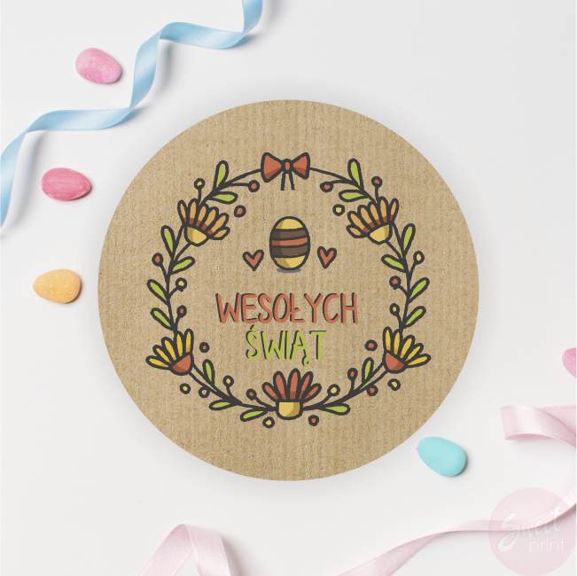 Wielkanocne naklejki kraft z napisem Wesołych Świąt
