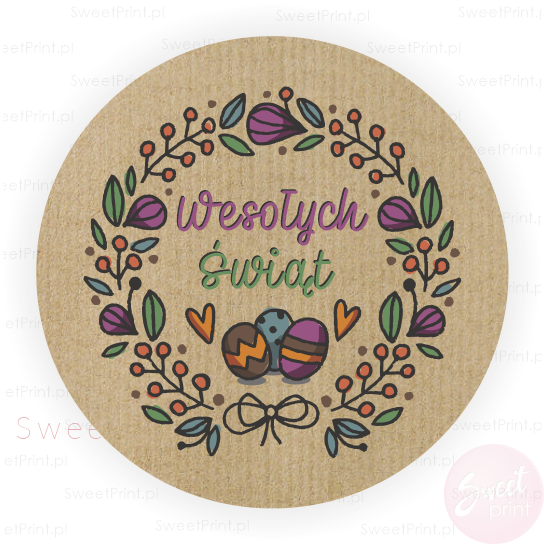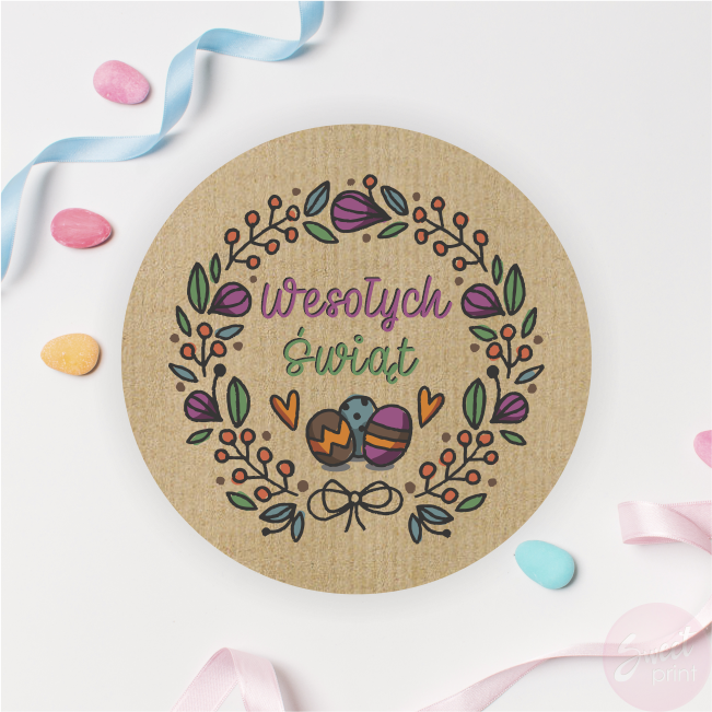 Wielkanocne naklejki kraft z napisem Wesołych Świąt