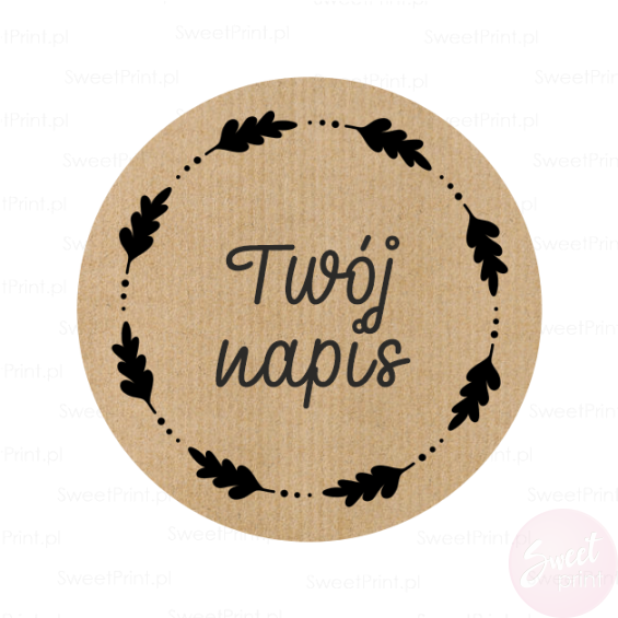 Personalizowane naklejki z ozdobnym wiankiem z listkami dębu.