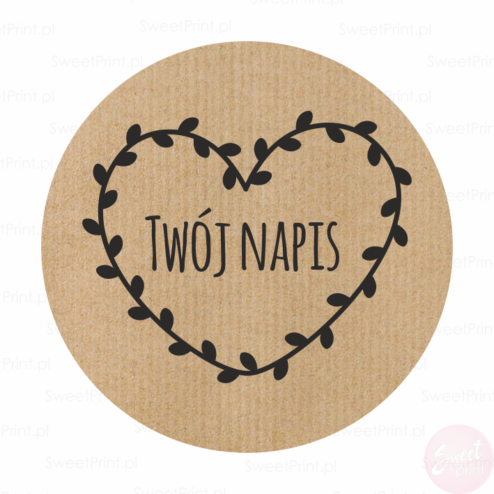 Personalizowane naklejki EKO z ozdobnym wiankiem w kształcie serca.