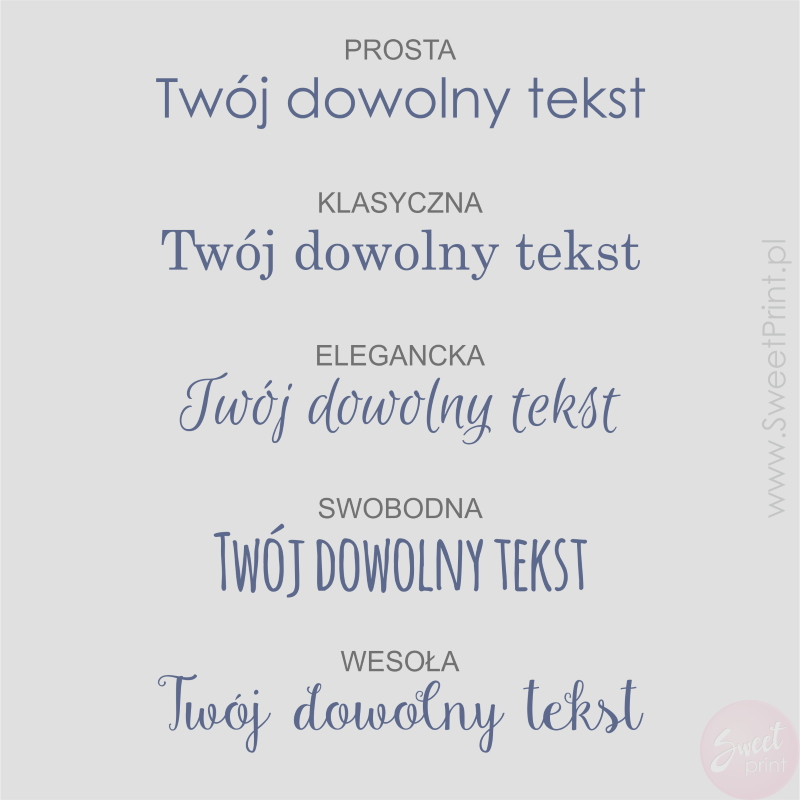 Projekt do akceptacji ( w przypadku wyboru opcji z własnym napisem) wysyłamy na email kontaktowy w ciągu 2-5 dni po otrzymaniu zamówienia i płatności.