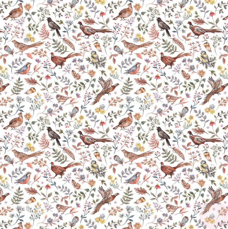 - motywy: ptaki, las, sarna, jeleń, ptaki, ćma, liście, kwiaty