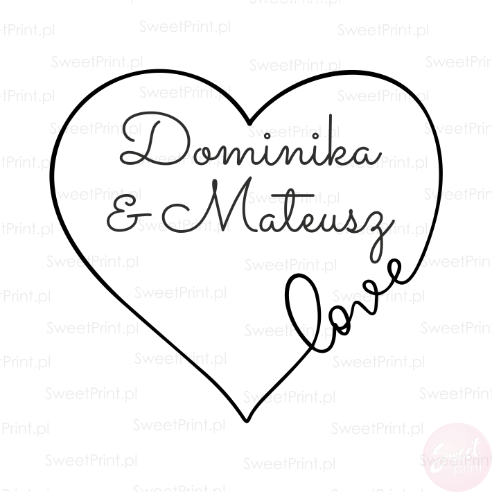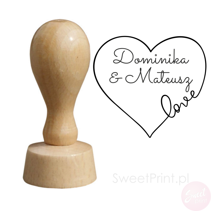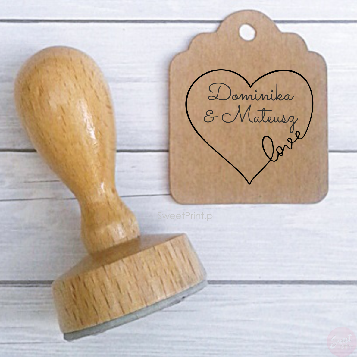 Na stemplu można umieścić imiona oraz datę ślubu (lub dowolny, krótki tekst, np. "Dziękujemy").