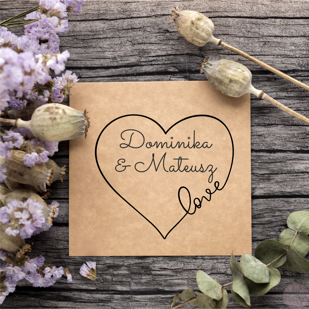 Taka ślubna pieczątka z Waszymi imionami będzie niezastąpiona w oznaczaniu etykiet, winietek, kopert czy zaproszeń ślubnych.