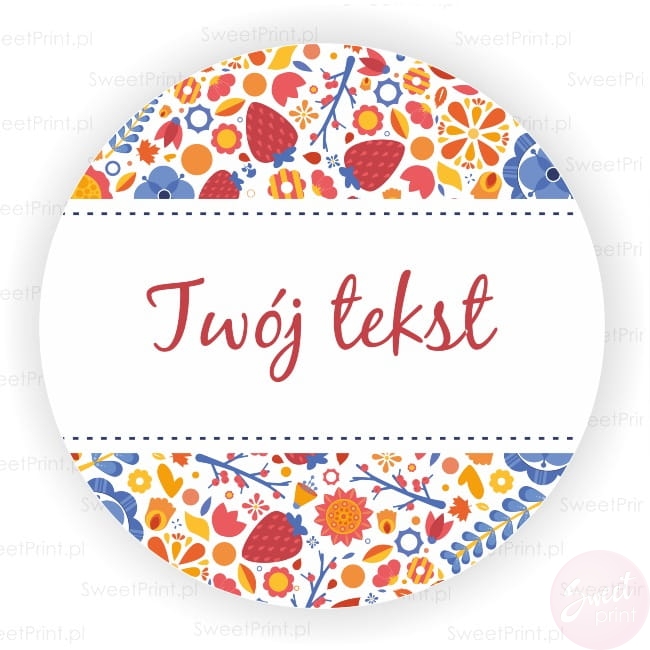 Personalizowane naklejki z wesołym, kwiecistym tłem i Twoim napisem