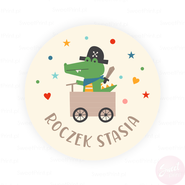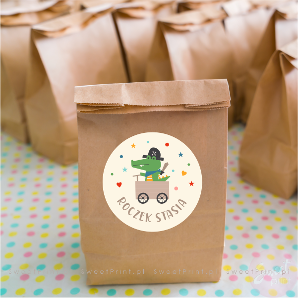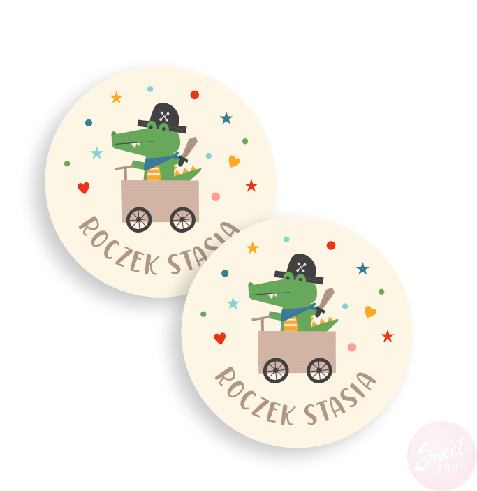 Stwórz niesamowite dekoracje, zaproszenia i podziękowania dzięki naszym personalizowanym naklejkom. Na tych okrągłych naklejkach z krokodylem wydrukujemy Twój dowolny krótki tekst.