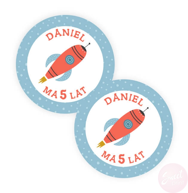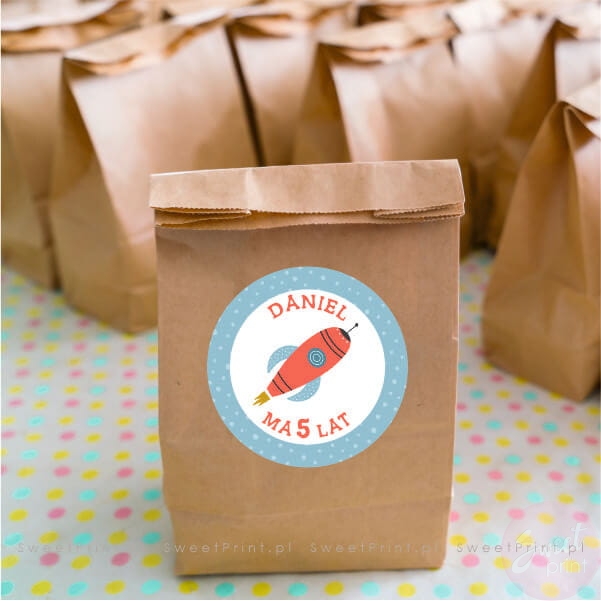 Stwórz niesamowite dekoracje, spersonalizowane zaproszenia i podziękowania dzięki naszym naklejkom z motywem rakiety. Na tych okrągłych naklejkach z rakietą wydrukujemy Twój dowolny krótki tekst.