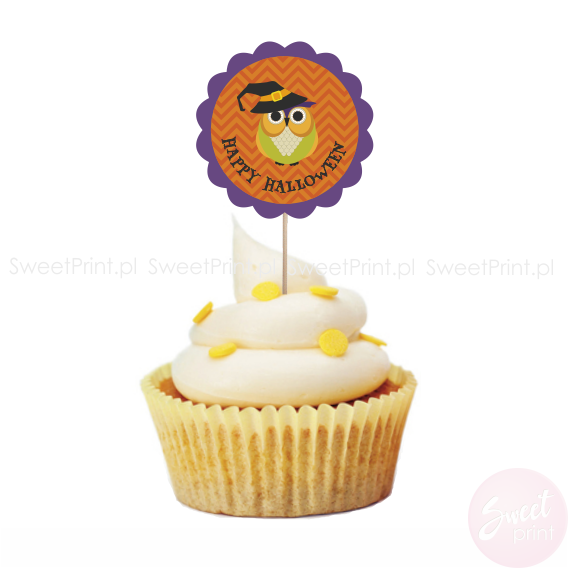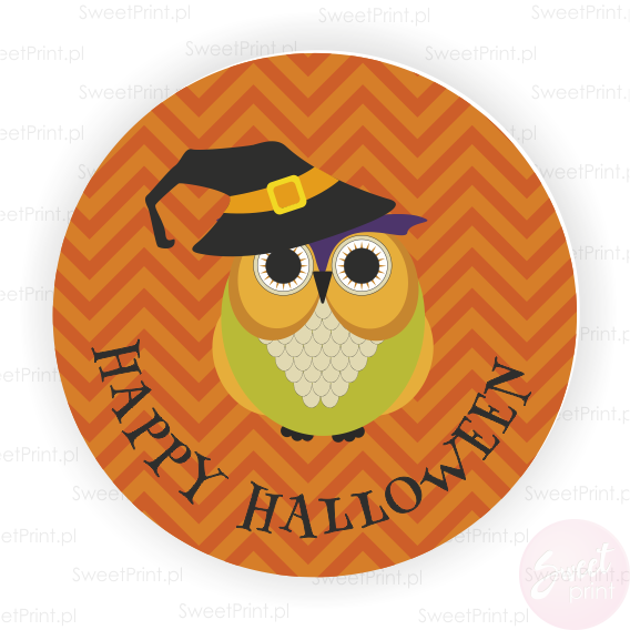 Na tych halloweenowych naklejkach z sową możesz umieścić dowolny, krótki tekst.
