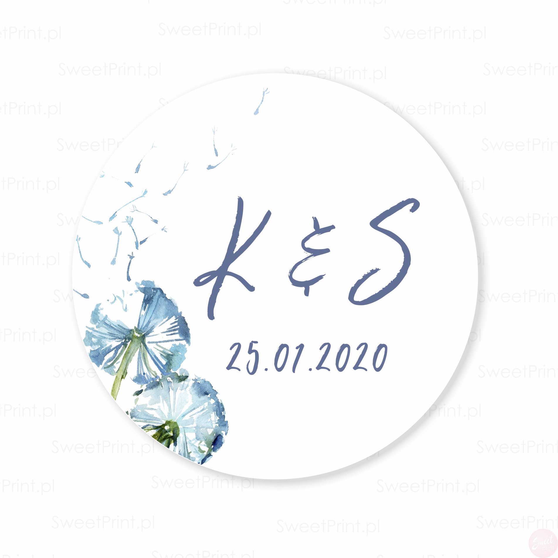 Na tych pastelowych naklejkach z dmuchawcem wydrukujemy Wasze imiona, datę ślubu, podziękowanie lub dowolny krótki tekst.