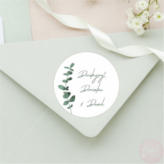 Personalizowane naklejki z eukaliptusem są idealnym sposobem, aby nadać oryginalny i elegancki akcent Waszym zaproszeniom ślubnym oraz podziękowaniom dla gości.