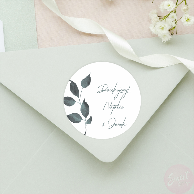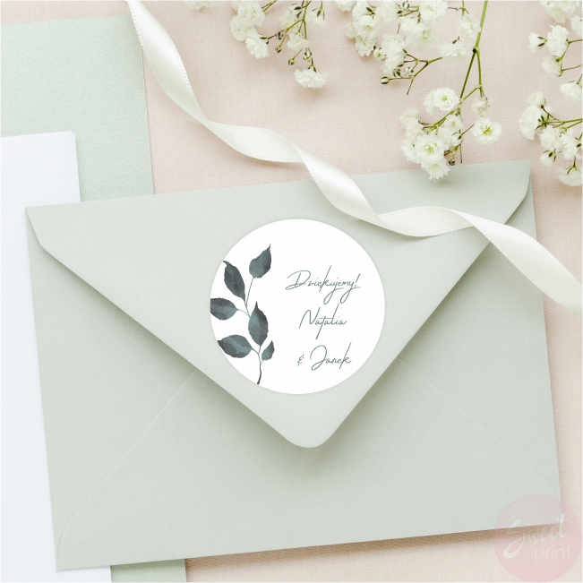 Personalizowane naklejki z gałązką są idealnym sposobem, aby nadać oryginalny i elegancki akcent Waszym zaproszeniom ślubnym oraz podziękowaniom dla gości.