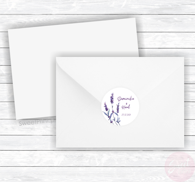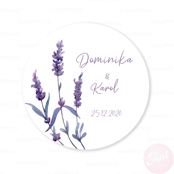 Personalizowane naklejki ślubne LAWENDA