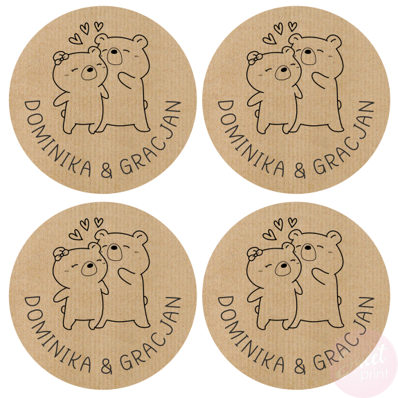 Personalizowane naklejki ślubne z brązowego papieru kraft