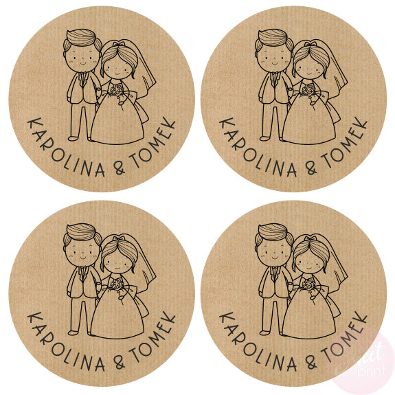 Personalizowane naklejki ślubne kraft MŁODA PARA