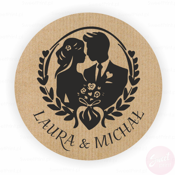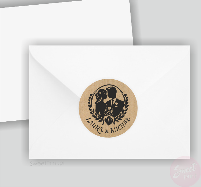 Personalizowane naklejki ślubne z papieru kraft