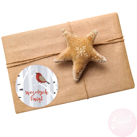 Personalizowane naklejki bożonarodzeniowe z ptaszkiem