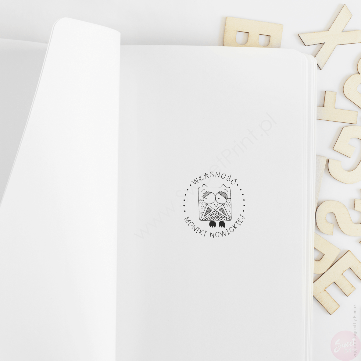 Personalizowany stempel z sową to świetny pomysł na prezent dla bliskiej Ci osoby. Nad i pod obrazkiem możesz umieścić imię i nazwisko lub dowolny, krótki tekst.