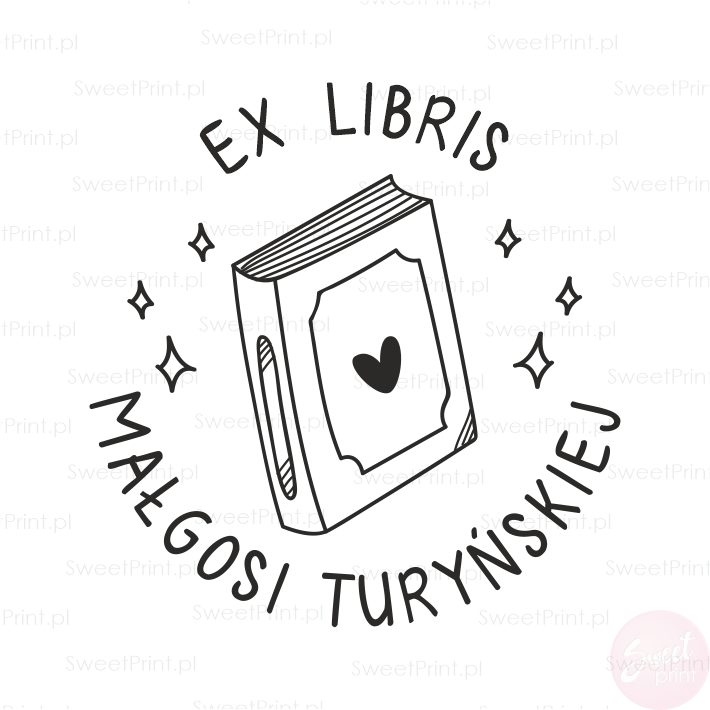 Personalizowany ex libris to także świetny pomysł na prezent dla bliskiej Ci osoby. Nad i pod obrazkiem możesz umieścić imię i nazwisko lub dowolny, krótki tekst.