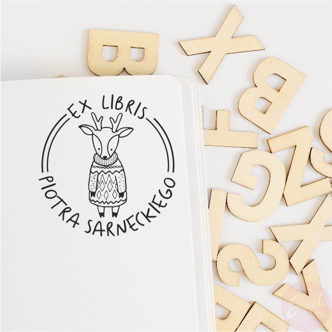 Personalizowany ex libris to także świetny pomysł na prezent dla bliskiej Ci osoby. Nad i pod obrazkiem możesz umieścić imię i nazwisko lub dowolny, krótki tekst.