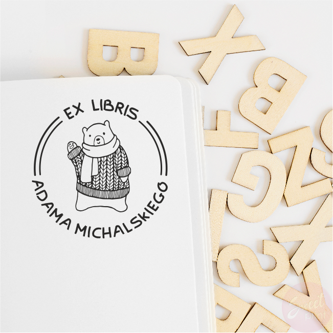 Personalizowany stempel Ex Libris z misiem