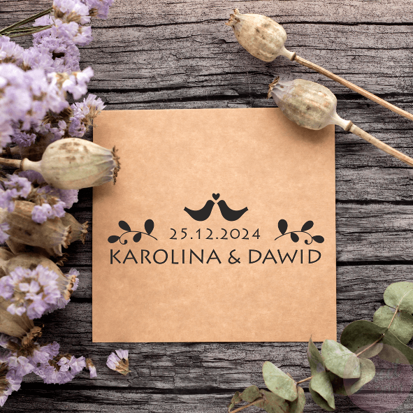 Ten wzór będzie także idealny jako stempel ślubny z imionami i datą ślubu (lub innym napisem np. "Dziękujemy za przybycie")