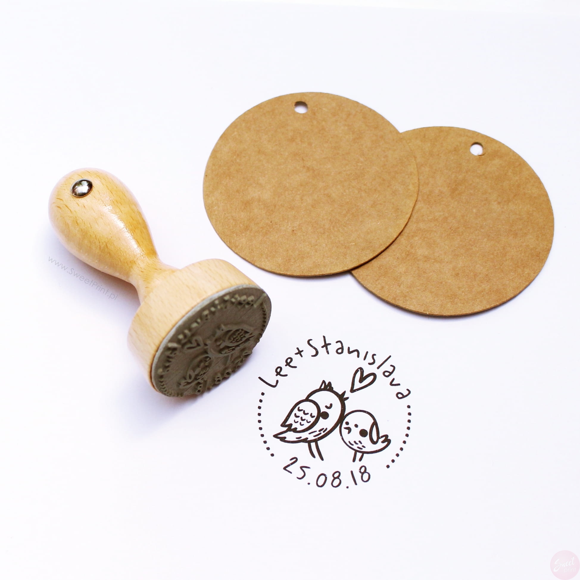 Personalizowany stempel z zakochanymi ptaszkami