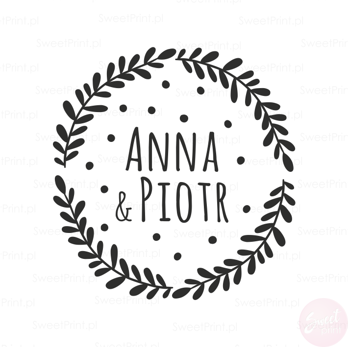 Wewnątrz wianka można umieścić inicjały, imiona, datę ślubu lub inny, krótki tekst.