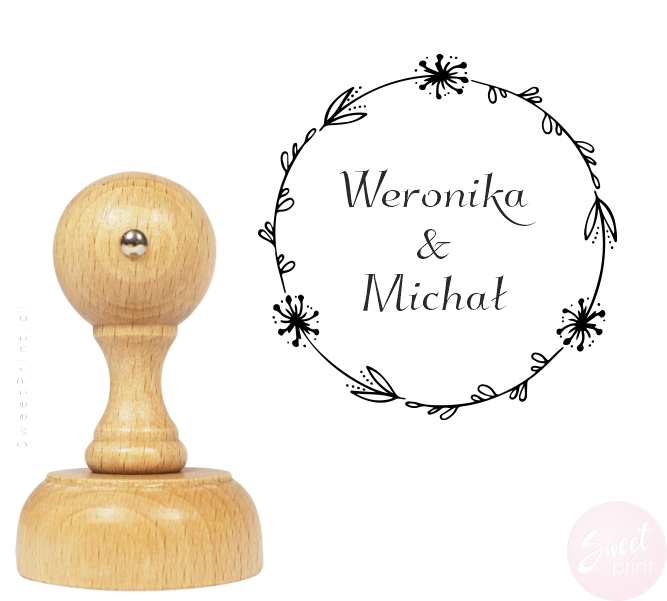 Personalizowana pieczątka ślubna z wiankiem