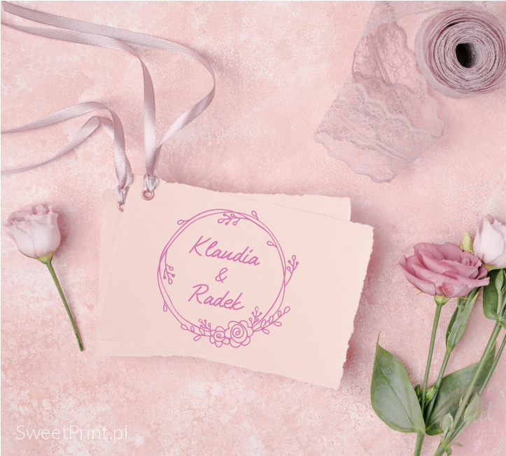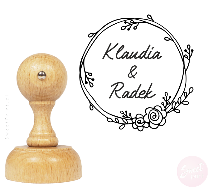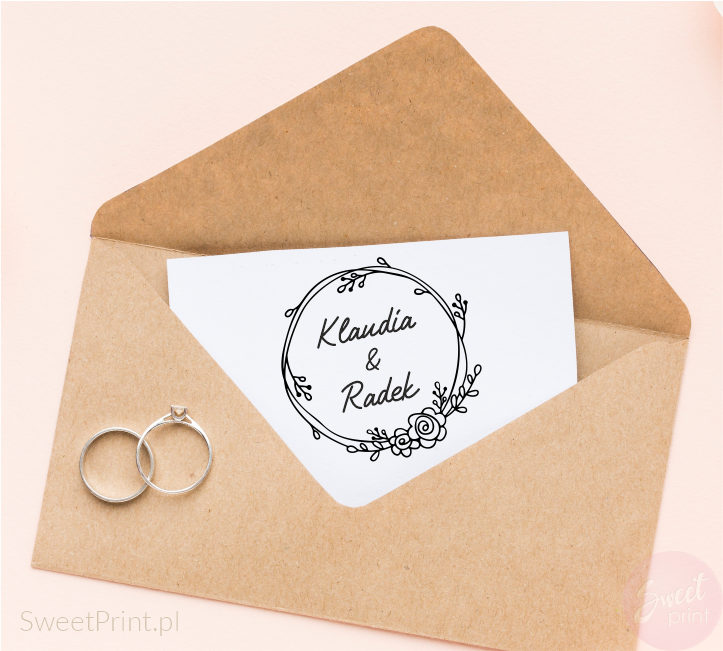 Personalizowany stempel ślubny WIANEK Z KWIATKAMI
