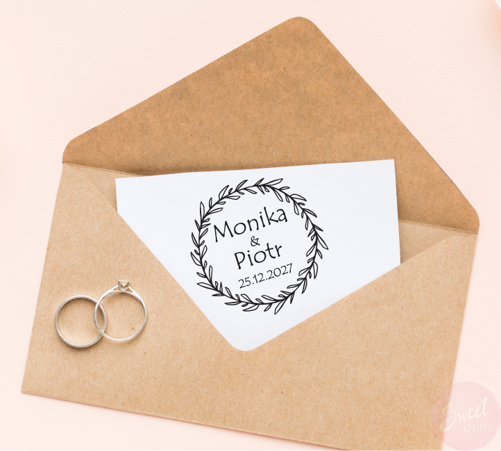 Taki stempel ślubny na zamówienie będzie idealny do stemplowania: