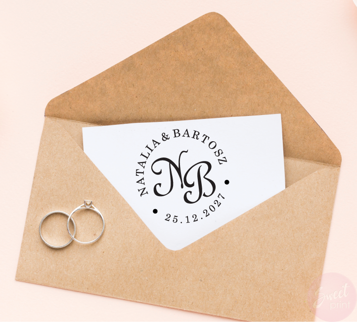Taki stempel ślubny na zamówienie będzie idealny do stemplowania: