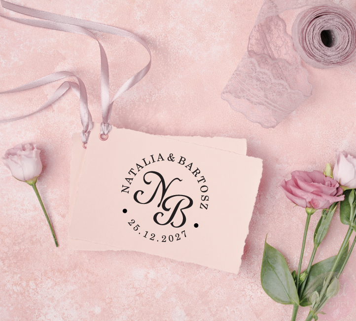 Oznaczcie swój wyjątkowy dzień niepowtarzalnym akcentem! Ta personalizowana pieczątka ślubna pozwoli Wam w elegancki sposób ozdobić zaproszenia, koperty, serwetki, winietki i inne elementy Waszej uroczystości. Dodajcie Wasze imiona, datę ślubu lub inicjały, tworząc unikalną pamiątkę na lata.