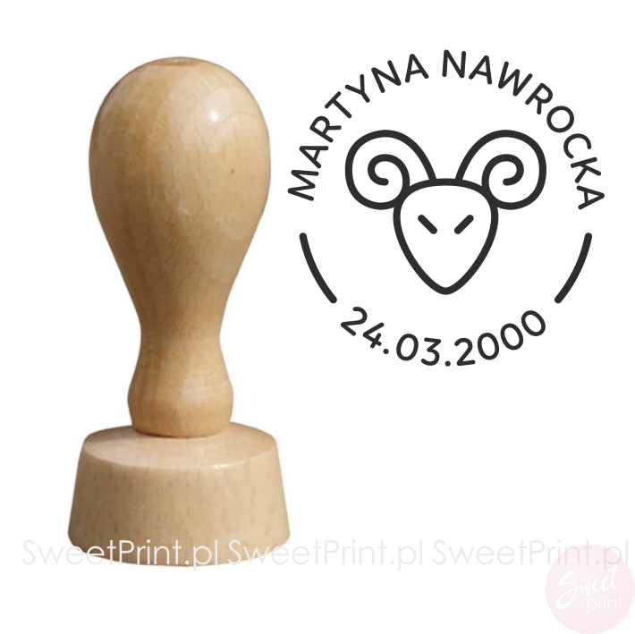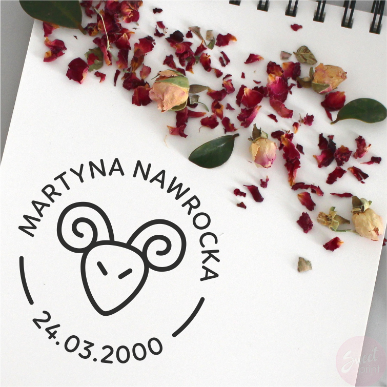 Personalizowana pieczątka ze znakiem zodiaku - BARAN, idealna na prezent z okazji urodzin bliskiej osoby.