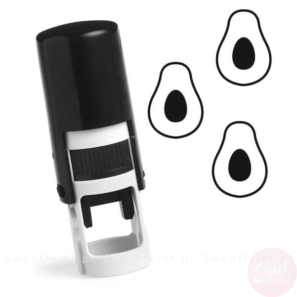 Okrągła pieczątka automatyczna ze znaczkiem w kształcie awokado.