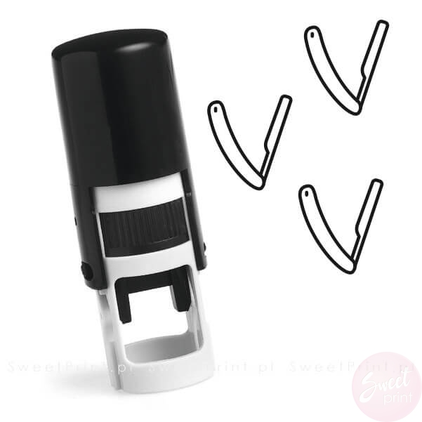 Okrągła pieczątka automatyczna ze znaczkiem brzytwy.