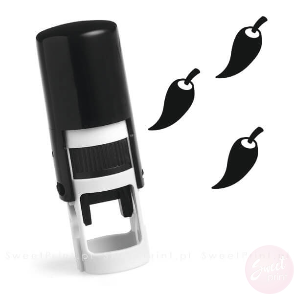 Okrągła pieczątka automatyczna ze znaczkiem w kształcie papryczki chilli.