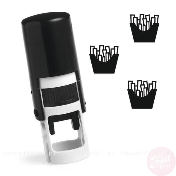 Okrągła pieczątka automatyczna ze znaczkiem frytek.