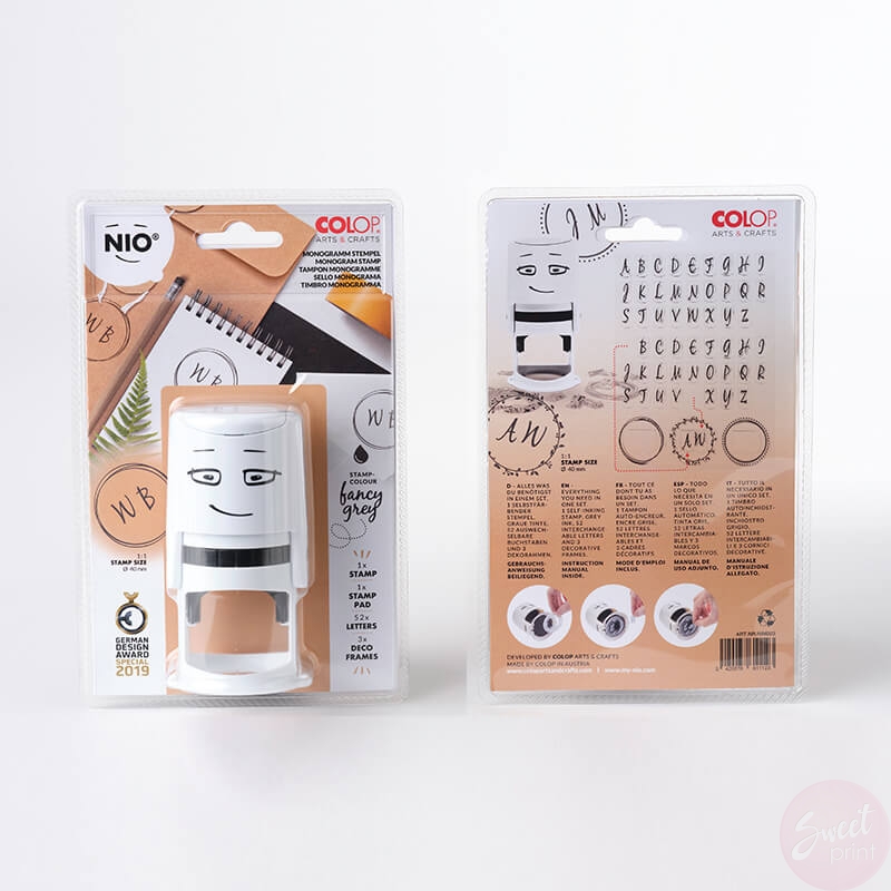 Dzięki tej automatycznej pieczątce samodzielnie stworzysz personalizowane odbicie wybranych przez Ciebie inicjałów.