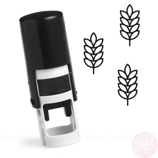 Okrągła pieczątka automatyczna ze znaczkiem w kształcie kłosa.