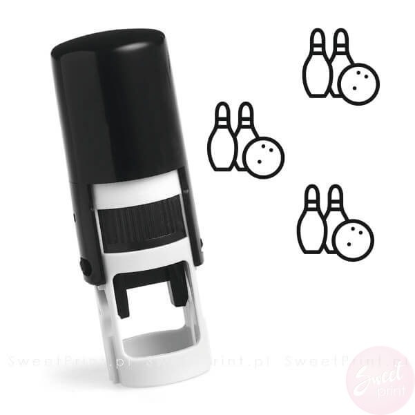 Okrągła pieczątka automatyczna ze znaczkiem kręgli.