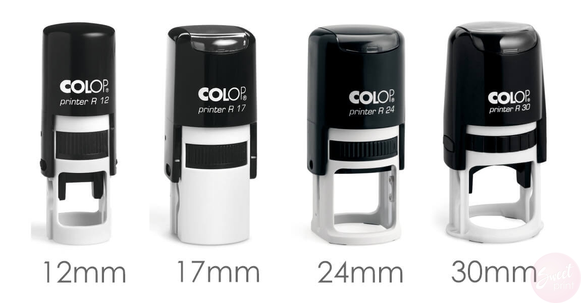 - gotowe pieczątki automatyczne dostępne są w rozmiarach (średnica): 12mm, 17mm, 24mm, 30mm - odbicie stempla może być nieco mniejsze