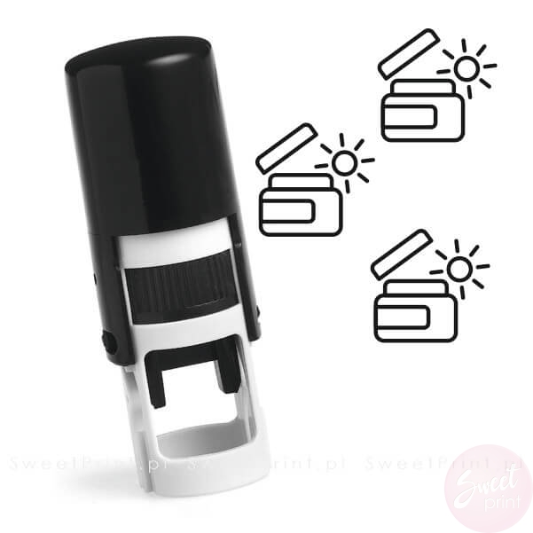 Okrągła pieczątka automatyczna z symbolem kremu na dzień.