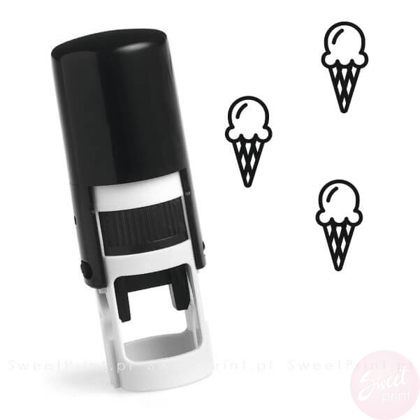 Okrągła pieczątka automatyczna ze znaczkiem loda w wafelku