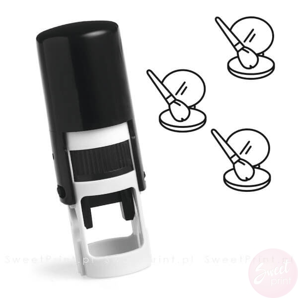 Okrągła pieczątka automatyczna z symbolem makijażu.