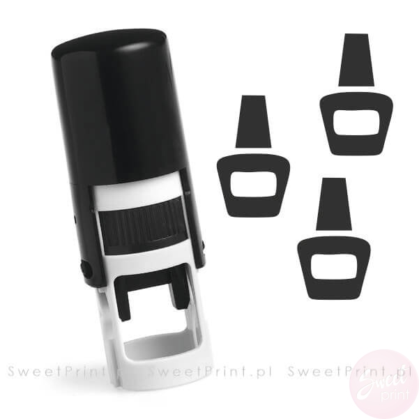 Okrągła pieczątka automatyczna ze znaczkiem w kształcie lakieru do paznokci.