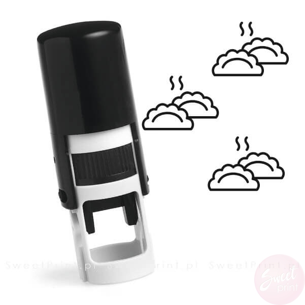 Okrągła pieczątka automatyczna ze znaczkiem w kształcie pierogów.