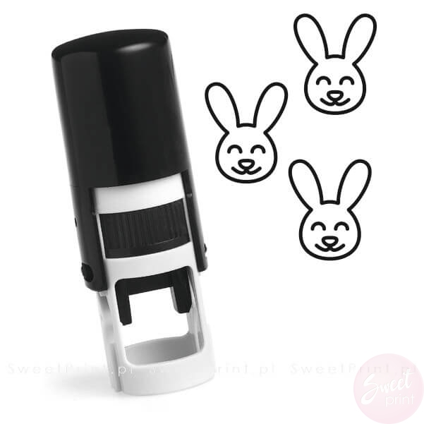 Okrągła pieczątka automatyczna ze znaczkiem w kształcie zajączka.